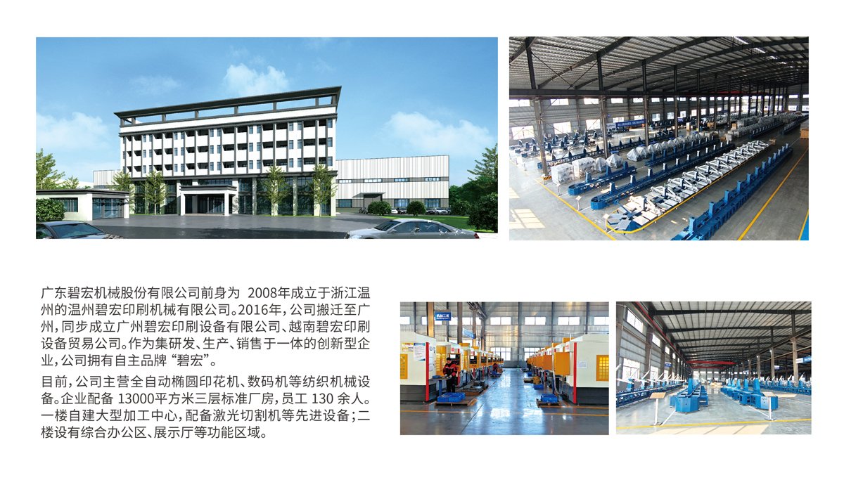 广东碧宏机械股份有限公司,源于2012年成立的温州碧宏印刷机械有限公司,以创新与市场敏锐为驱动力,历经十年发展实现跨越式成长。2016年迁址广州布局华南市场,2017年成立广州碧宏印刷设备有限公司,夯实区域根基;2019年成立广东碧宏机械股份有限公司并设立越南碧宏贸易公司,形成国内外双轮驱动格局。2022年在韶关投资建设现代化智能化产业基地,打造研产销一体化生态闭环,成为自主品牌“碧宏”的技术标杆企业。