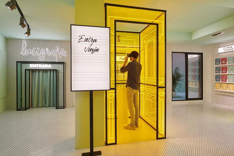 这一次,Masquespacio接到的Brief是:希望这家概念店能从设计上,将RUBIO辉煌的过去与展望的未来相融合。除此之外,客户的自由度相当高。于是,Masquespacio使用霓虹灯、有机玻璃与格纹涂料,将整家店打造得十分具有未来主义的味道。