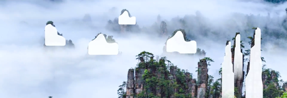 作品1:以《阿凡达》悬浮山和张家界国家森林公园乾坤柱为原型,并以抽象的形式融合云与山元素,并加入了瀑布、御笔峰等元素。