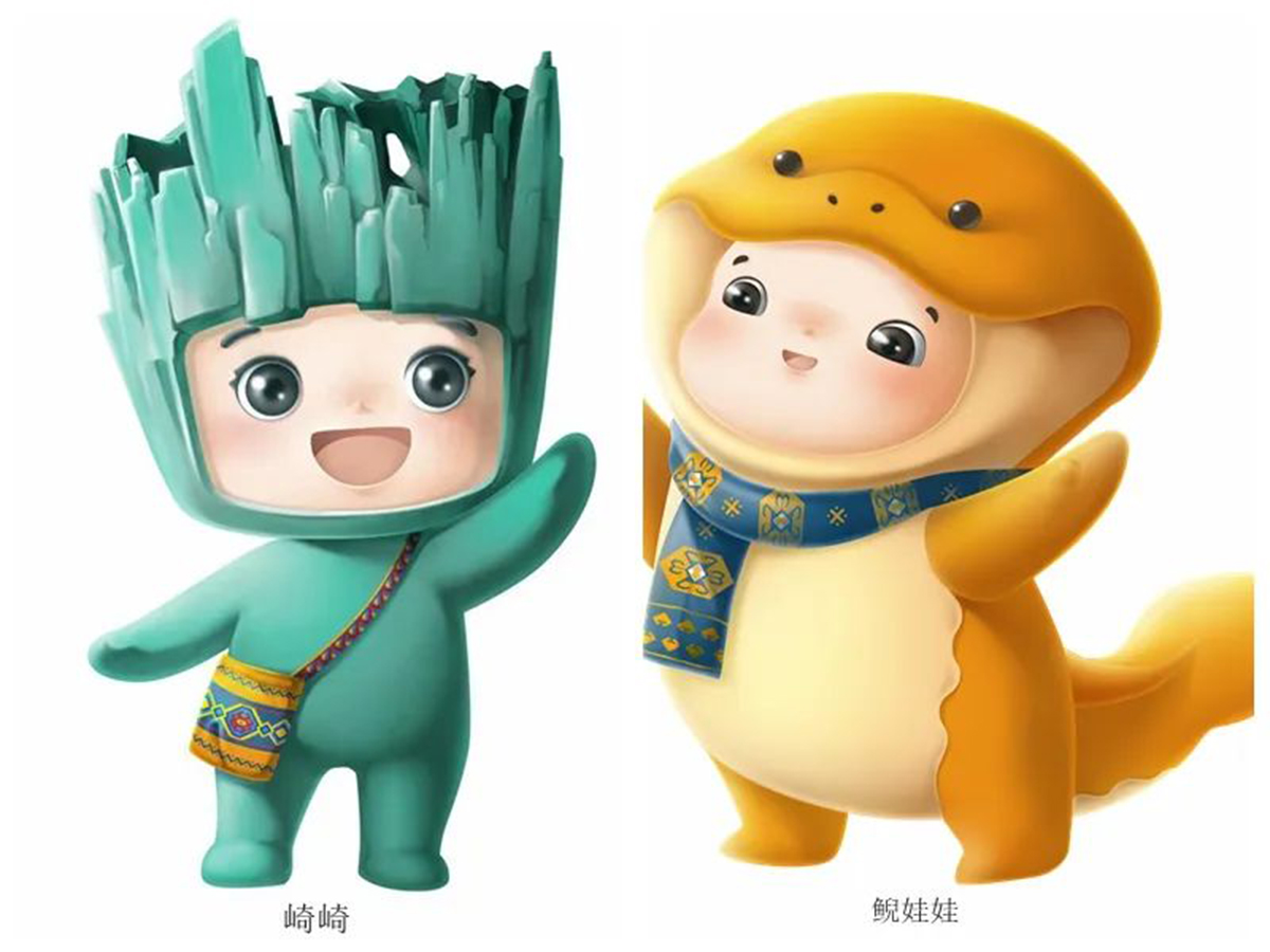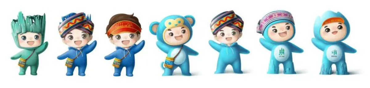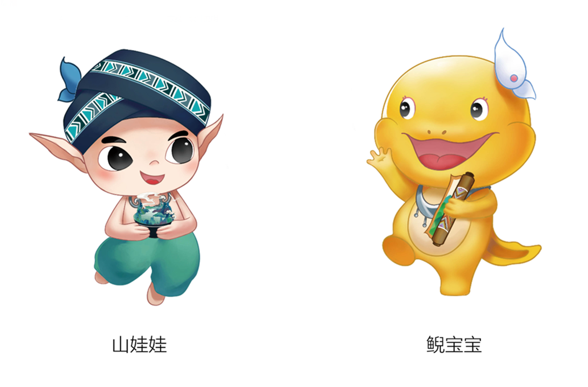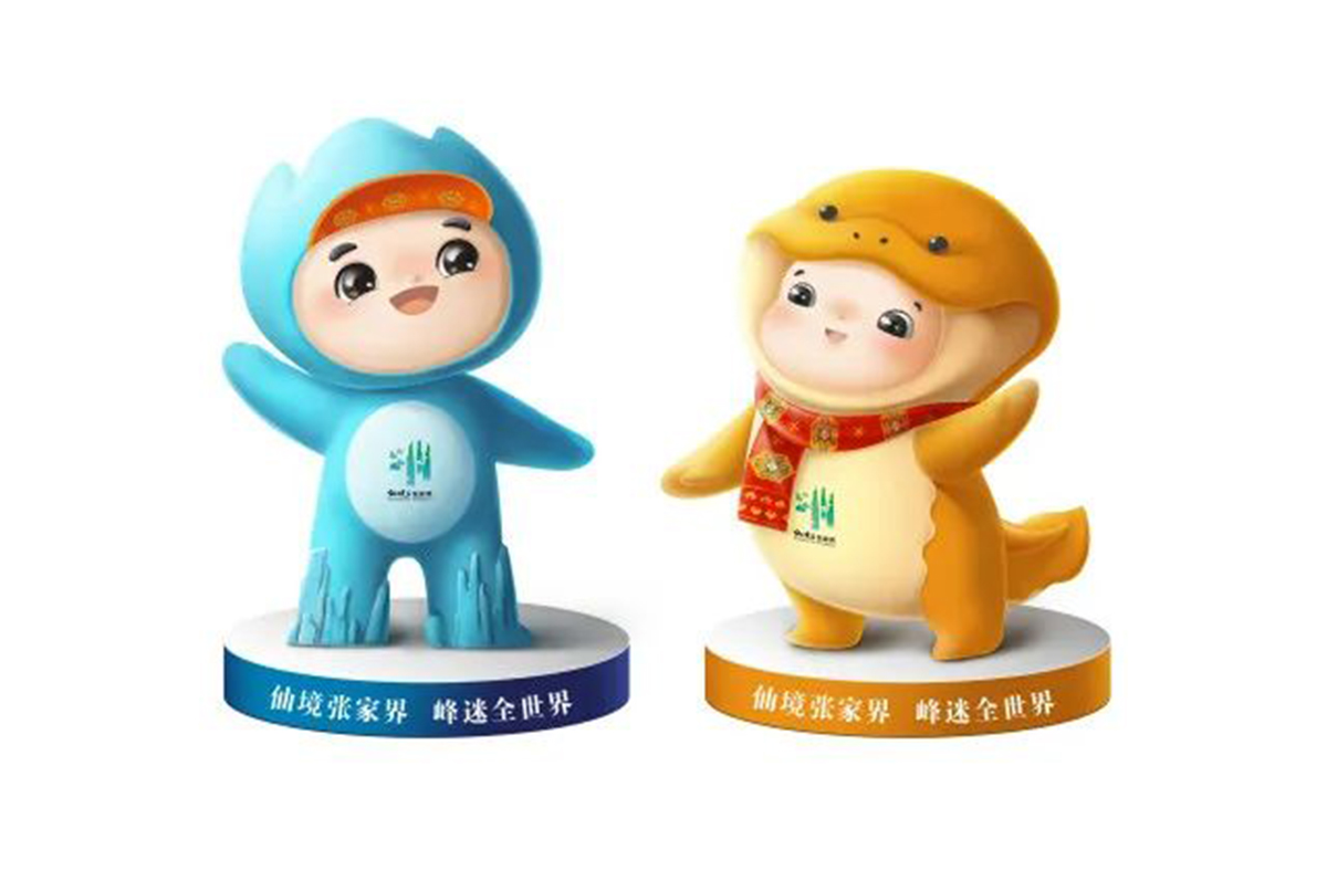 两个吉祥物以可爱萌物的形式设计,融合了张家界具标志性的山峰、大鲵等元素,作为旅游大使来宣传,形象还是非常亲切的。