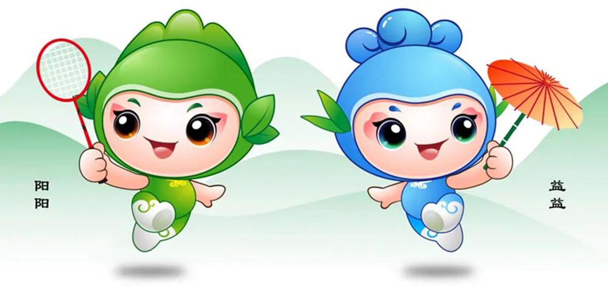 这么好的LOGO再搭配上一对头戴山峰和浪花的吉祥物就非常完美了。如果不了解情况,还以为哪里又开运动会了。