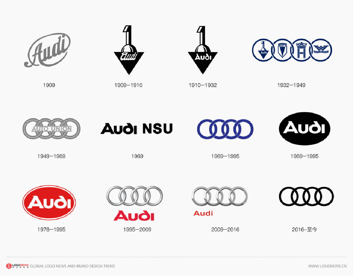 奥迪是德国最著名的汽车制造公司之一,其名称来自创始人奥古斯特·霍希(August Horch)姓氏「Horch」的拉丁语「Audi」。虽然奥迪在1909年诞生,但其经典的四环标志在32年之后才开始出现。