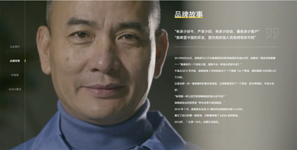 它的品牌故事与美赞臣类似,其创始人徐晓波因为在2012年为儿子从香港购买奶粉,被海关问询了4个小时,被泱泱大国产不出一杯放心奶的现实所刺痛,于是用 2 年时间考察了7 个国家 136 个牧场,最终自建牧场打造品牌。