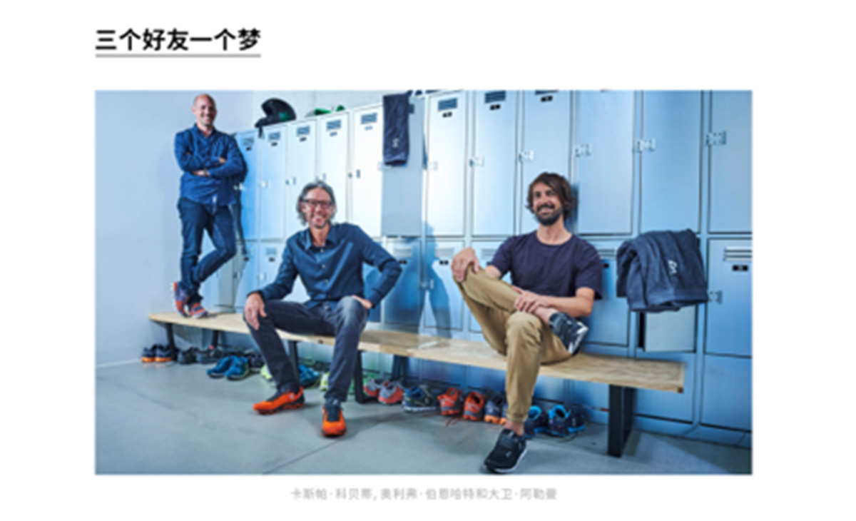 运动品牌On昂跑官方旗舰店的品牌故事一栏,由四部分构成:源自瑞士、前铁人三项赛冠军运动员退役后创立、投资人及合作伙伴费德勒、CloudTec专利科技介绍。