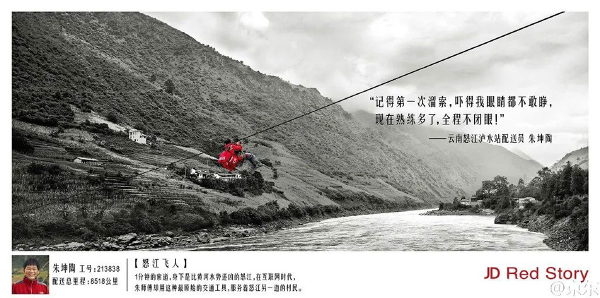 像农夫山泉在2014、2015年就投放过水源勘探师探寻水源地的故事,西藏拉萨的业务代表铺货送水的故事。京东也传播过边远地区配送员的故事。这些都是很好的品牌故事。
