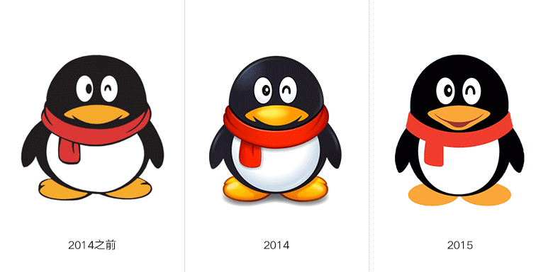 此次腾讯将QQ的标志企鹅进行了彻底的扁平化,企鹅更高更瘦,嘴巴也闭上了,眼睛和脚等部位也进行了微调。目前,QQ网站、QQ会员、QQ软件等各处的标识都已经陆续更换为新版本。