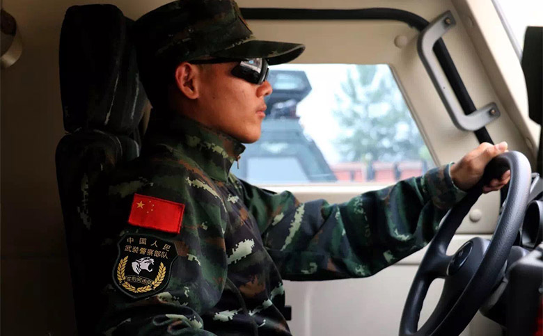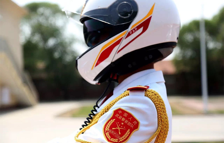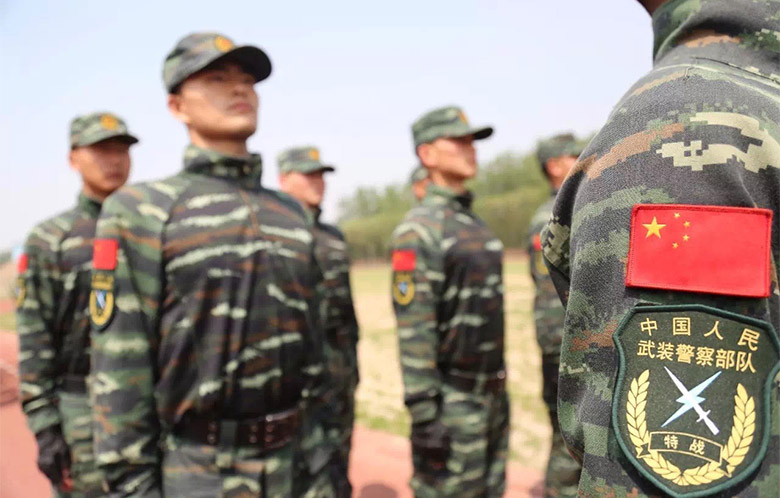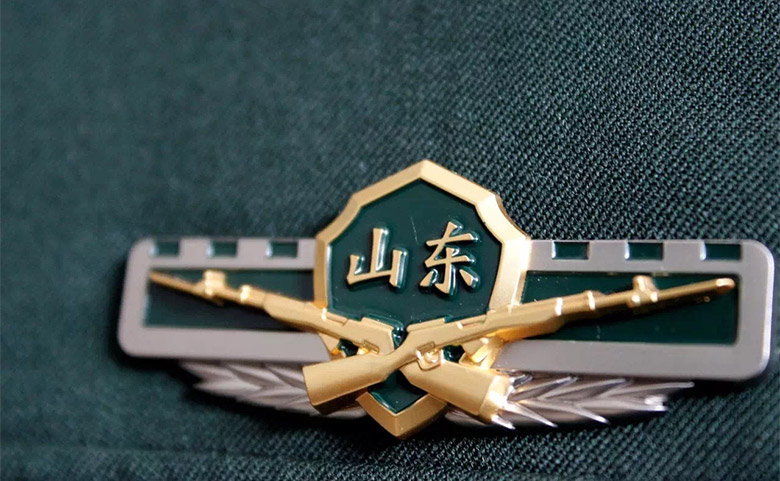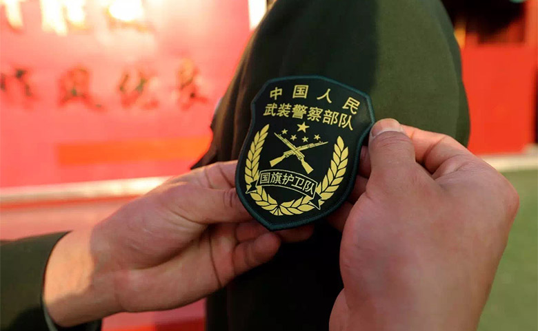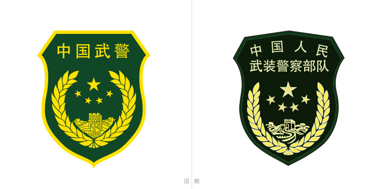 根据武警部队编制体制调整改革总体安排,5月1日起,武警部队统一佩戴新式标志、服饰。新式胸标分金属和织唛两款九类,用“武警”“警种部队名称”等字样区分单位,胸标中心图案由盾牌和双枪构成,双枪以56式半自动步枪为原型,象征军事属性,左右两侧为长城象形设计,象征武警部队是国家武装力量的组成部分,盾牌下配橄榄枝,寓意和平稳定。